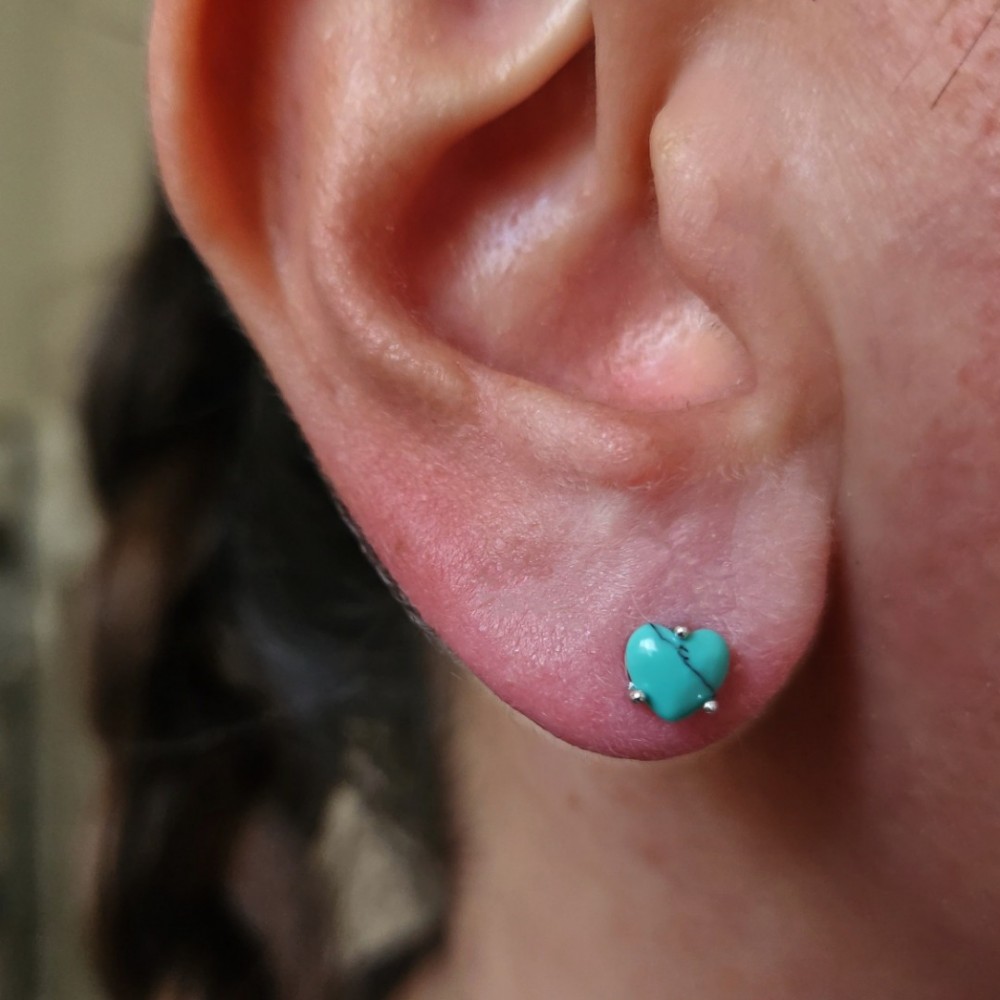 FİRUZE TURKUAZ TAŞLI KALP KÜPE 925 GÜMÜŞ KÜPE