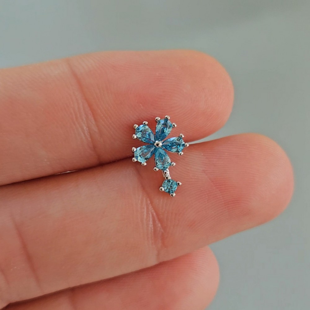 Aqua Çiçek Piercing Silver 925 Gümüş