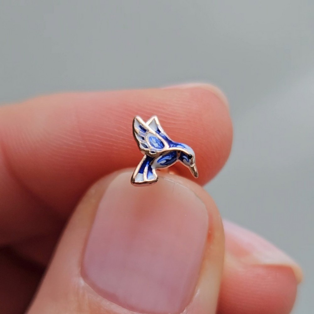 Hummingbird Dark Blue Sinek Kuşu Piercing Rose 925 Gümüş (sağ)
